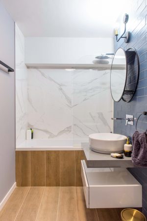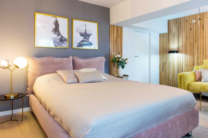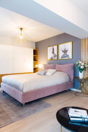 Having both a bed and a sofa in a studio apartment while not creating clutter was at the top of the requirements list for this project. The Sunnyside Studio apartament is for living small but definitely thinking big!