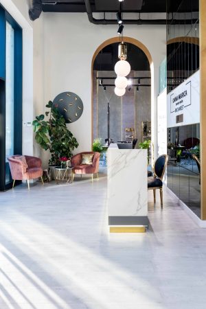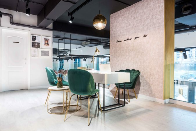 Designing a commercial space is especially different from designing a residential space as is not just for family and friends, is decorated for the entire clientele. The multipurpose layout was planned so it would accommodate every area with its specific profile: reception, hairsyling, make-up, cosmetology, nail bar, storage room, toilets.