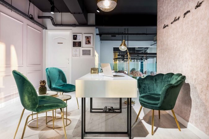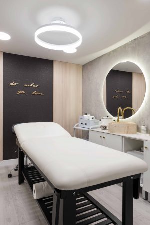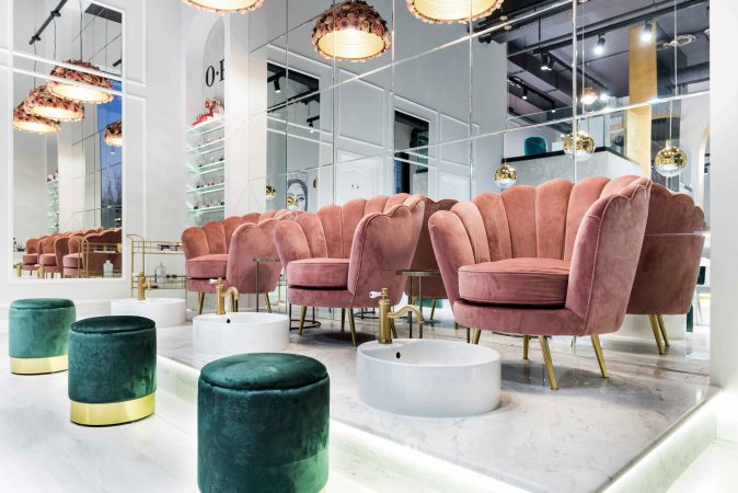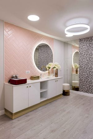A project inspired by the world of fashion, this bespoke beauty salon is all about luxury and glamour. The colour pallete as well as the high-end finished were especially chosen to provide the customer top-notch experience.